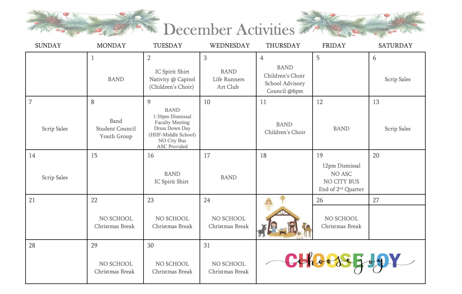 - Activities Calendar